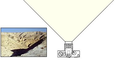Sempre chi possiede una SLR, può montare un obiettivo che vede molto più stretto dell'occhio umano, ovverosia che ha un angolo visivo inferiore ai 45 gradi. Si può arrivare a 30, 15, in casi estremi anche a 6 gradi. Un obiettivo di questo genere è definito teleobiettivo (fig. 4). Guardando attraverso di esso si abbraccia un panorama più stretto di quello colto dall'occhio, ma i singoli oggetti risulteranno ingranditi.